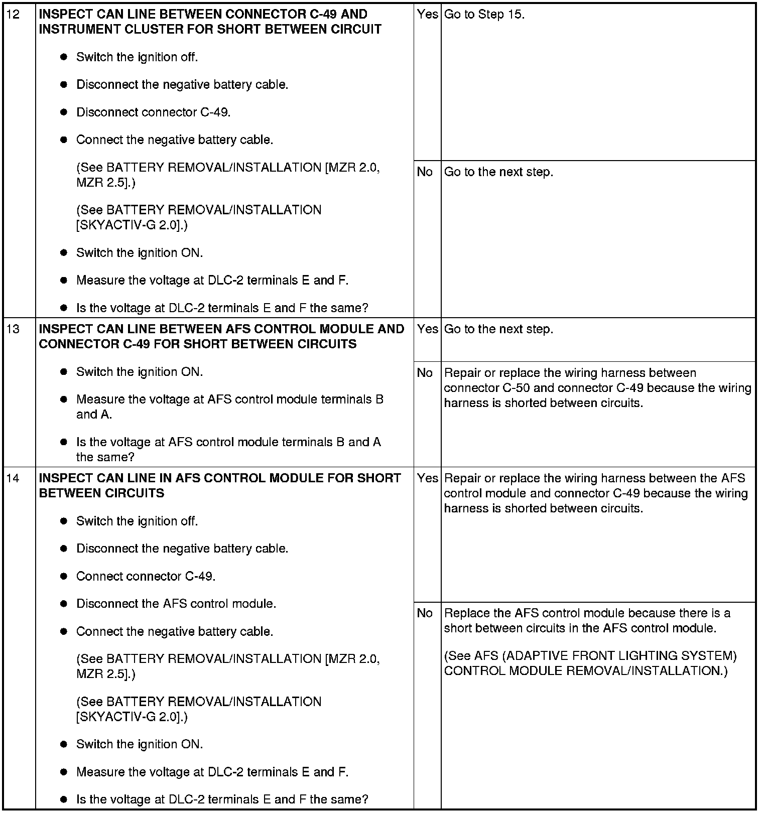 - Perform the following malfunction diagnosis only when it is diagnosed with a short between circuits by Controller Area Network (CAN) Malfunction Diagnosis Flow [Multiplex Communication System].