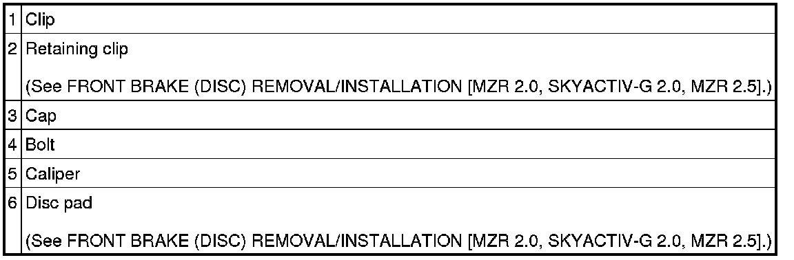 DISC PAD (FRONT) REPLACEMENT [MZR 2.0, SKYACTIV-G 2.0, MZR 2.5]