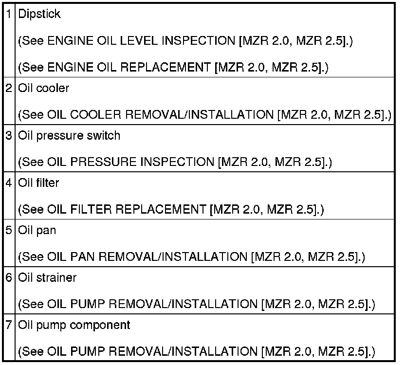 LUBRICATION SYSTEM LOCATION INDEX [MZR 2.0, MZR 2.5]