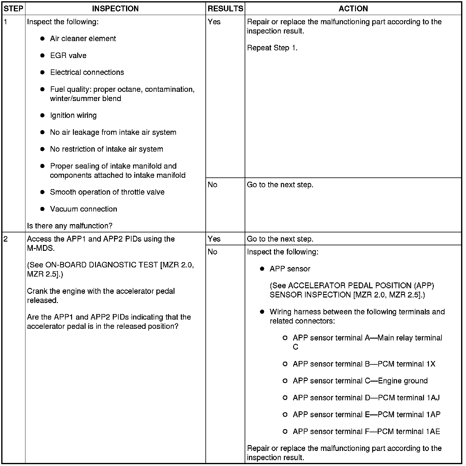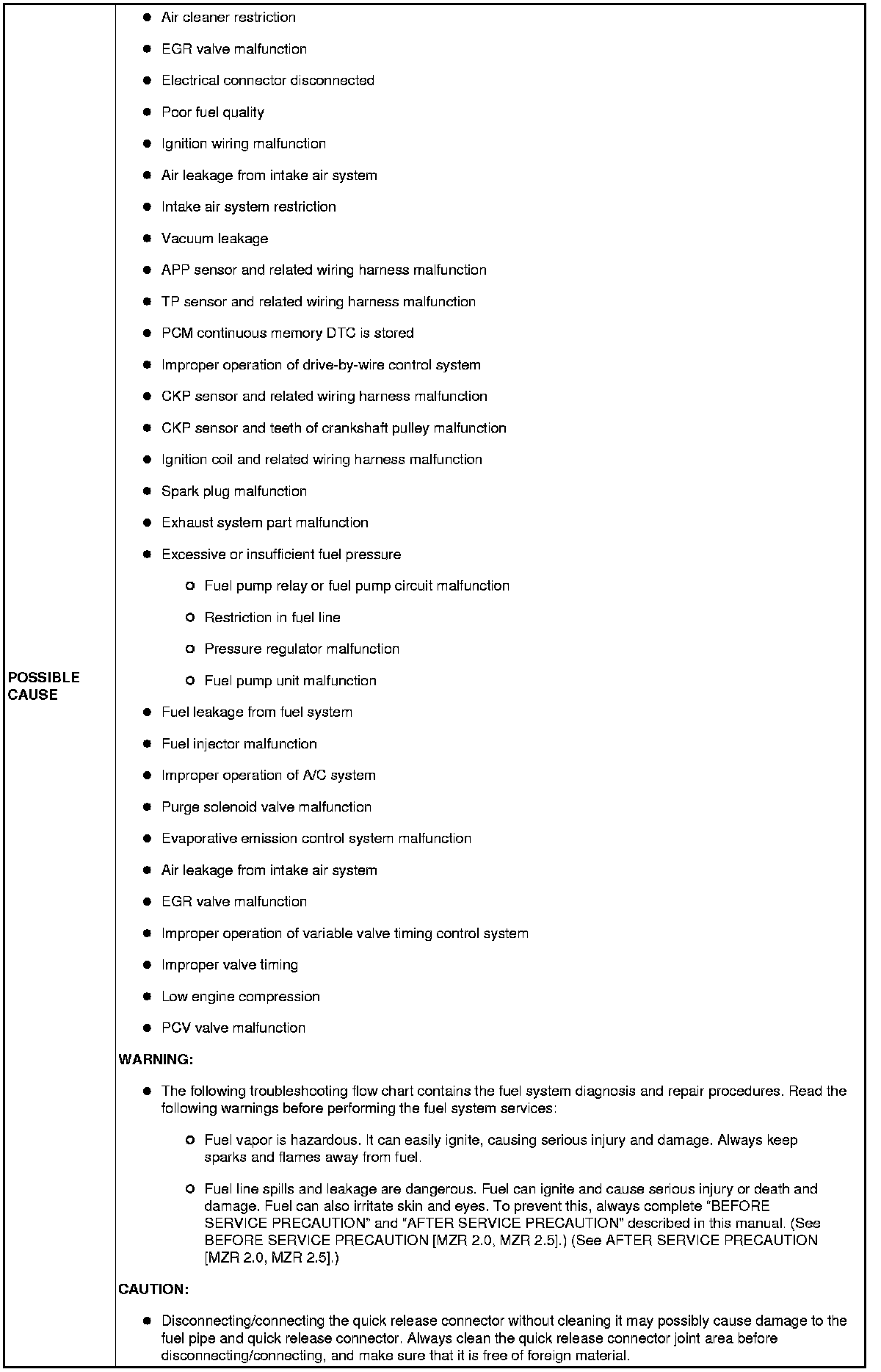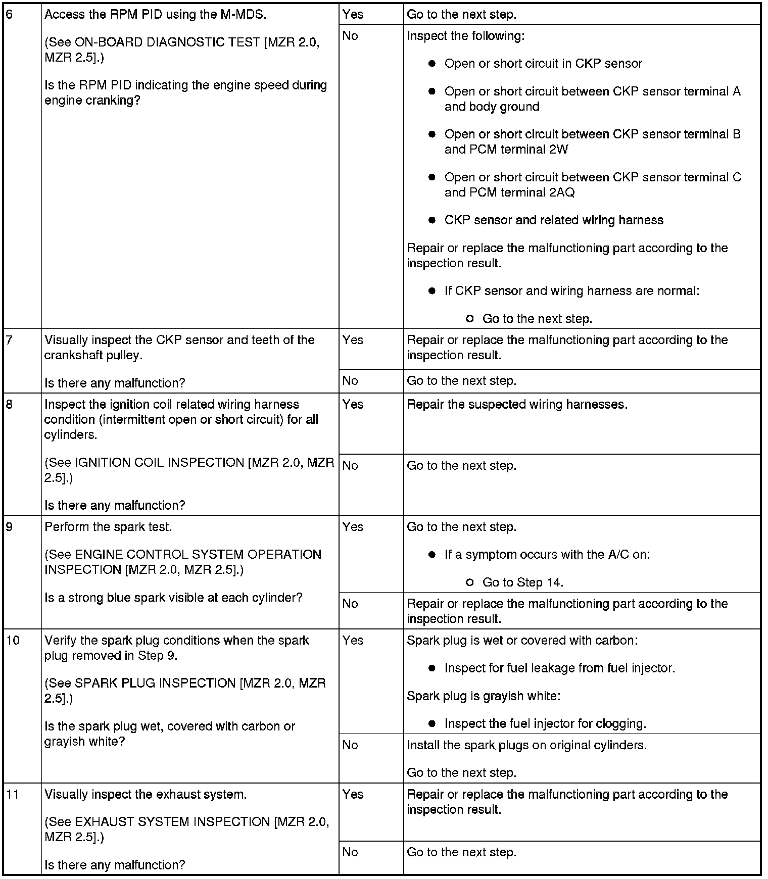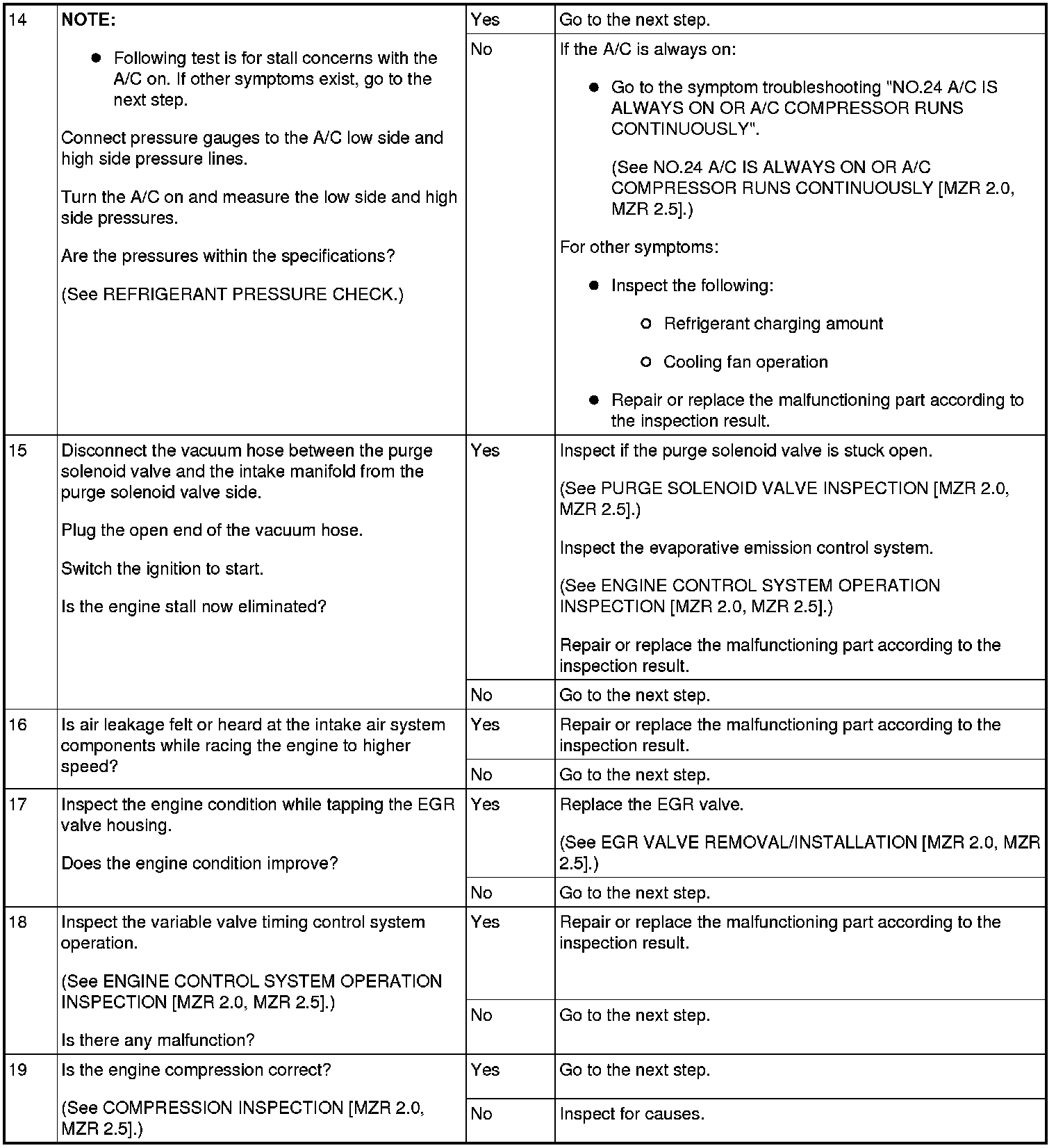 NO.5 ENGINE STALLS-AFTER START/AT IDLE [MZR 2.0, MZR 2.5]