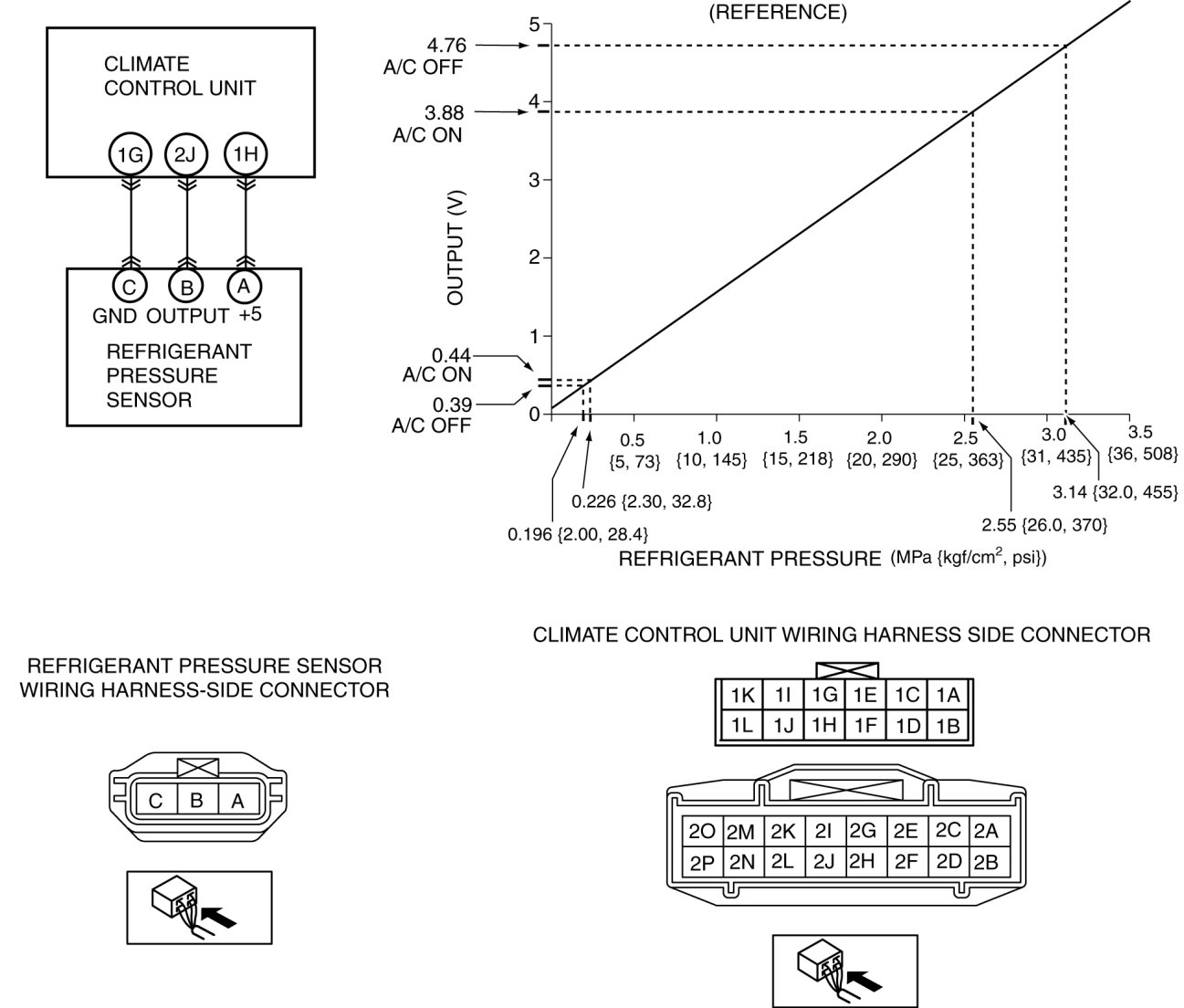 - If wiring harness is normal, replace the refrigerant pressure sensor.