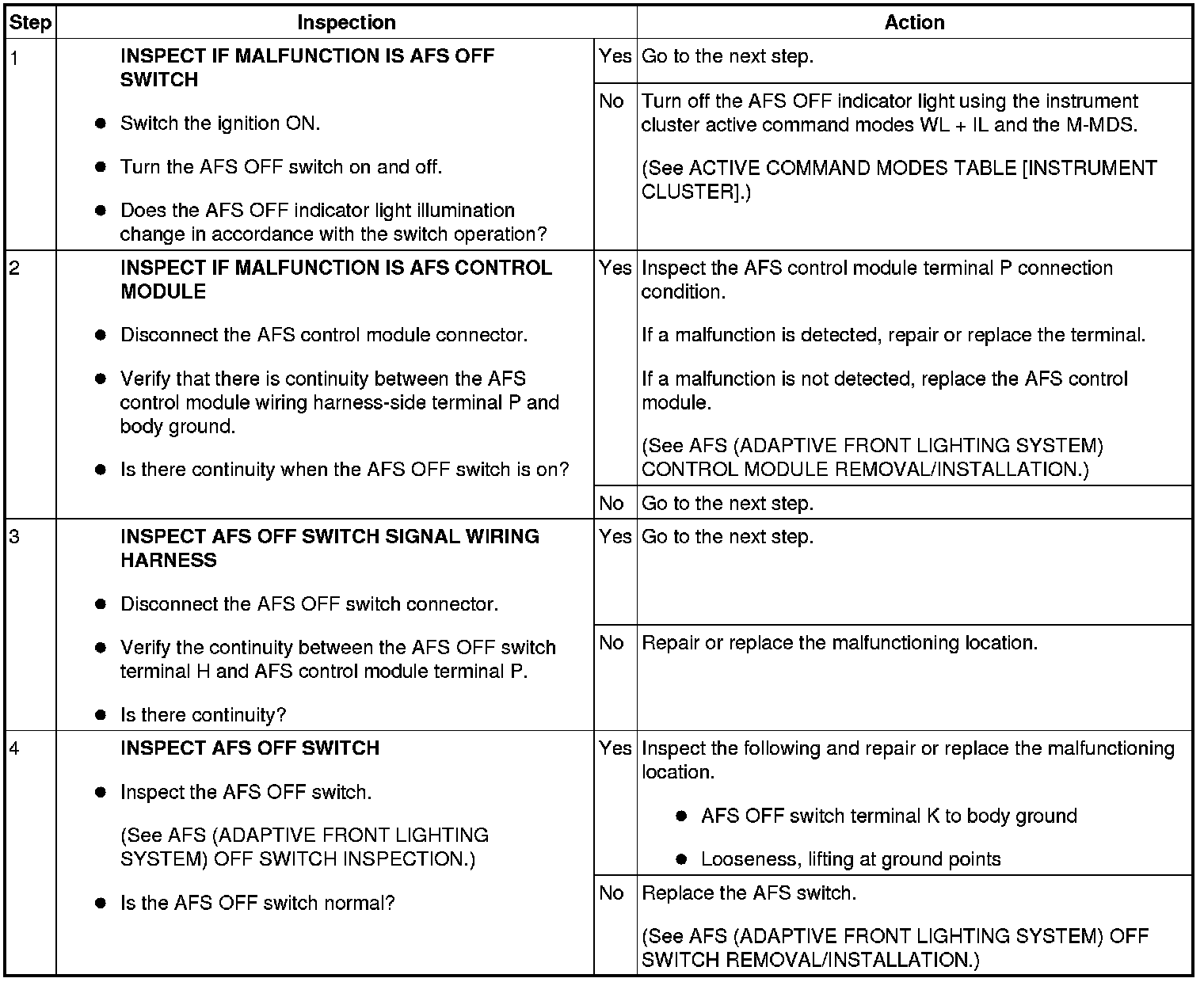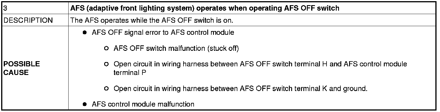 No.3 AFS (ADAPTIVE FRONT LIGHTING SYSTEM) OPERATES WHEN OPERATING AFS OFF SWITCH [AFS (ADAPTIVE FRONT LIGHTING SYSTEM)]