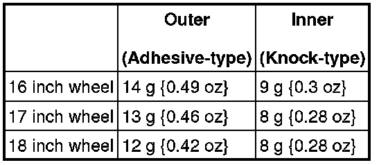- One balance weight must not exceed 60g {2.12 oz}, and a total of tow balance weights must not exceed 100g {3.53 oz}.