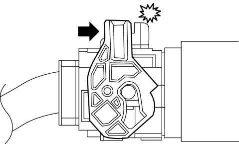 1. Verify that the PCM connector lever is tilted towards the wiring harness side as shown in the figure.