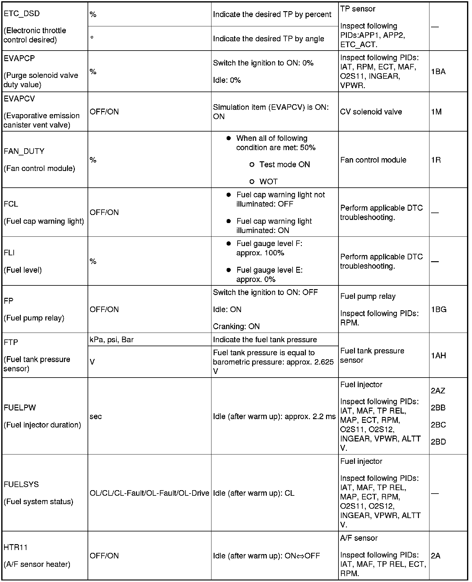 - Following PIDs are for the ATX models. If inspects for following PIDs, PID/Data Monitor Inspection [FS5A-EL]