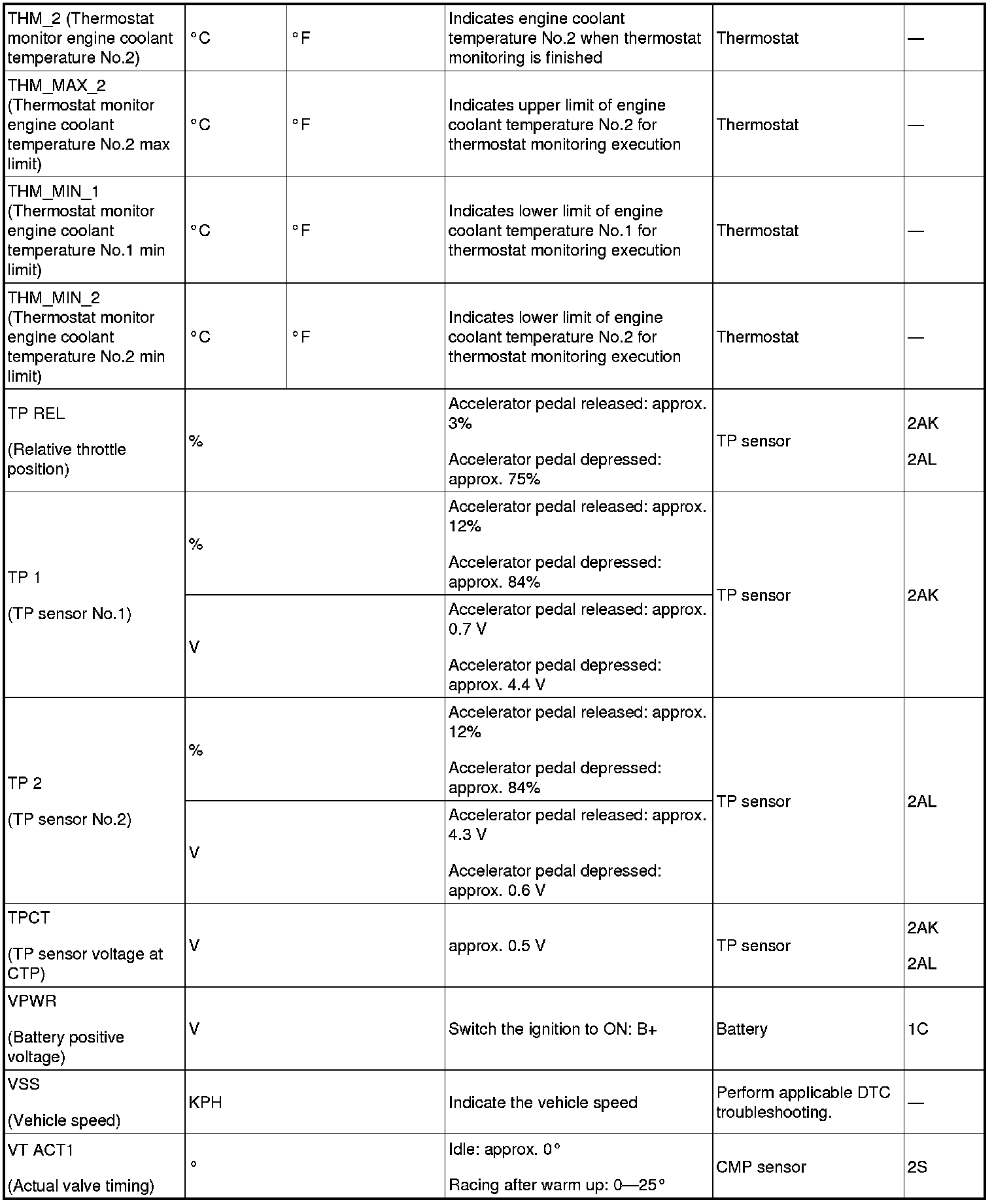 - ACCS, ALTF, ARPMDES, EVAPCP, EVAPCV, FAN_DUTY, FP, IMRC, IMTV, INJ_1~4, SEGRP, TEST, VT Duty1 wt