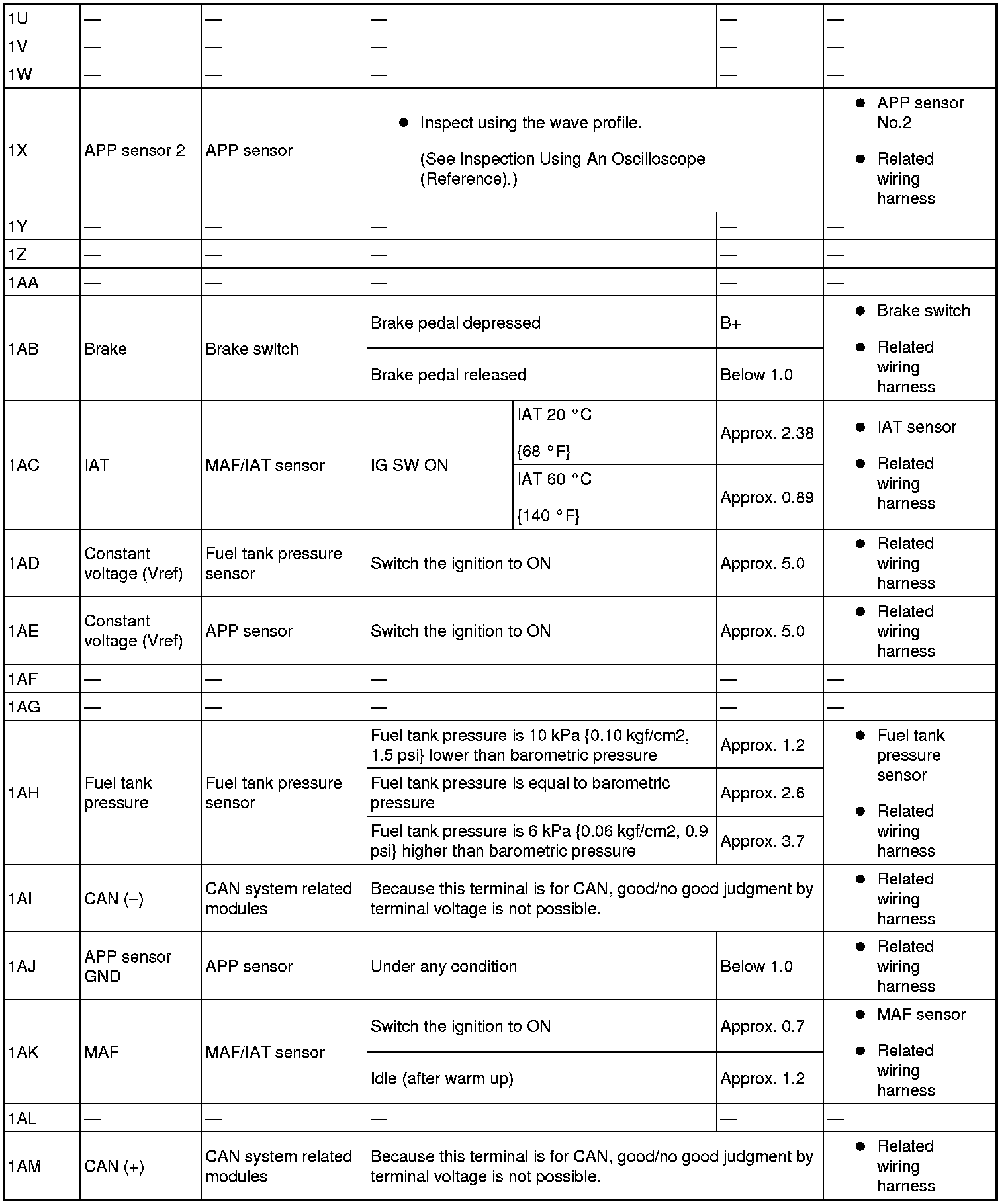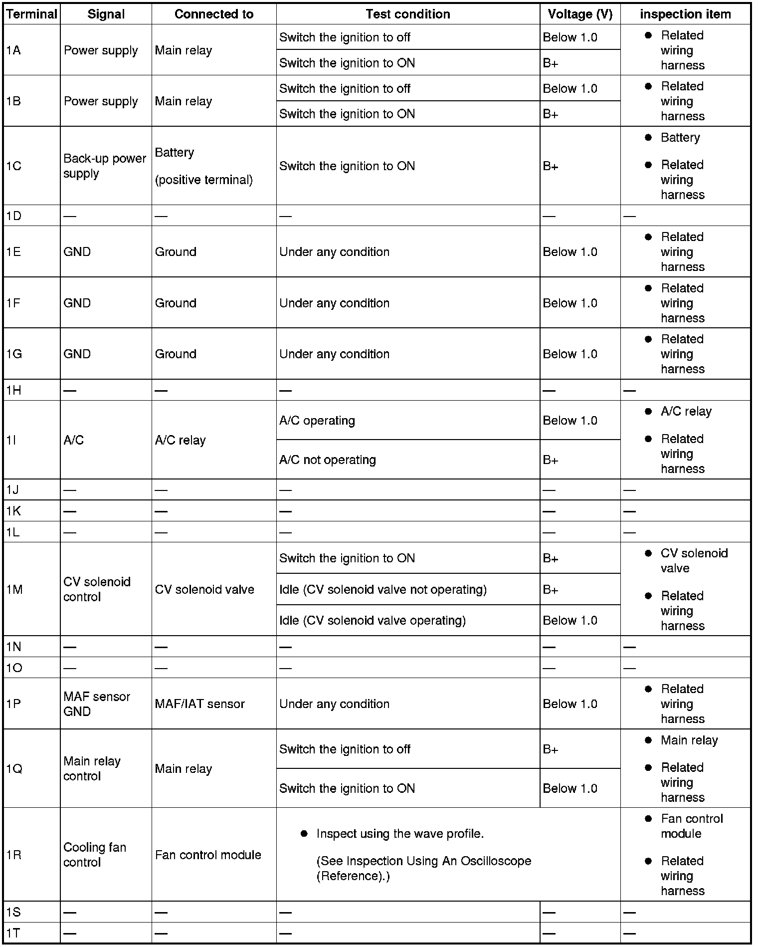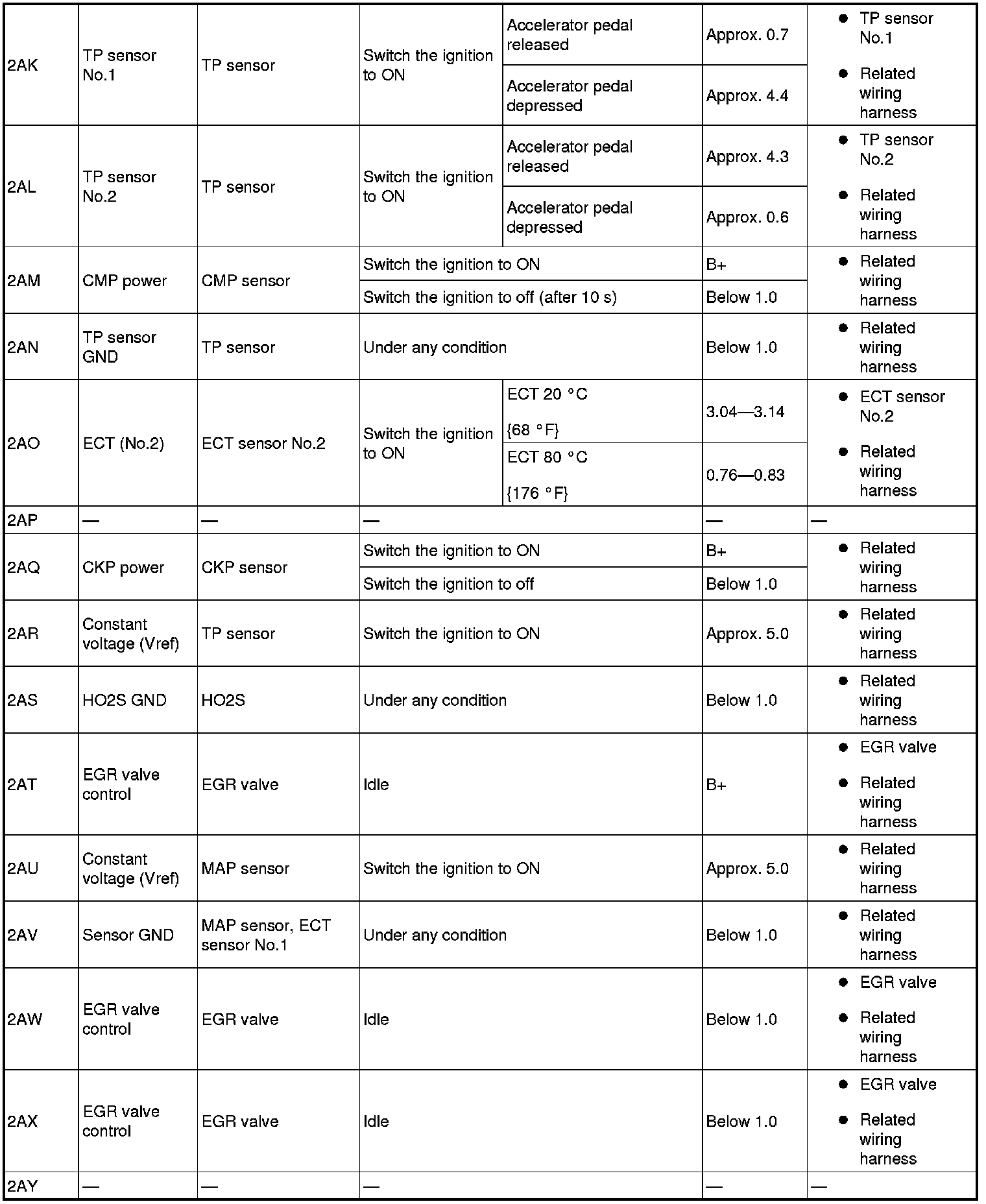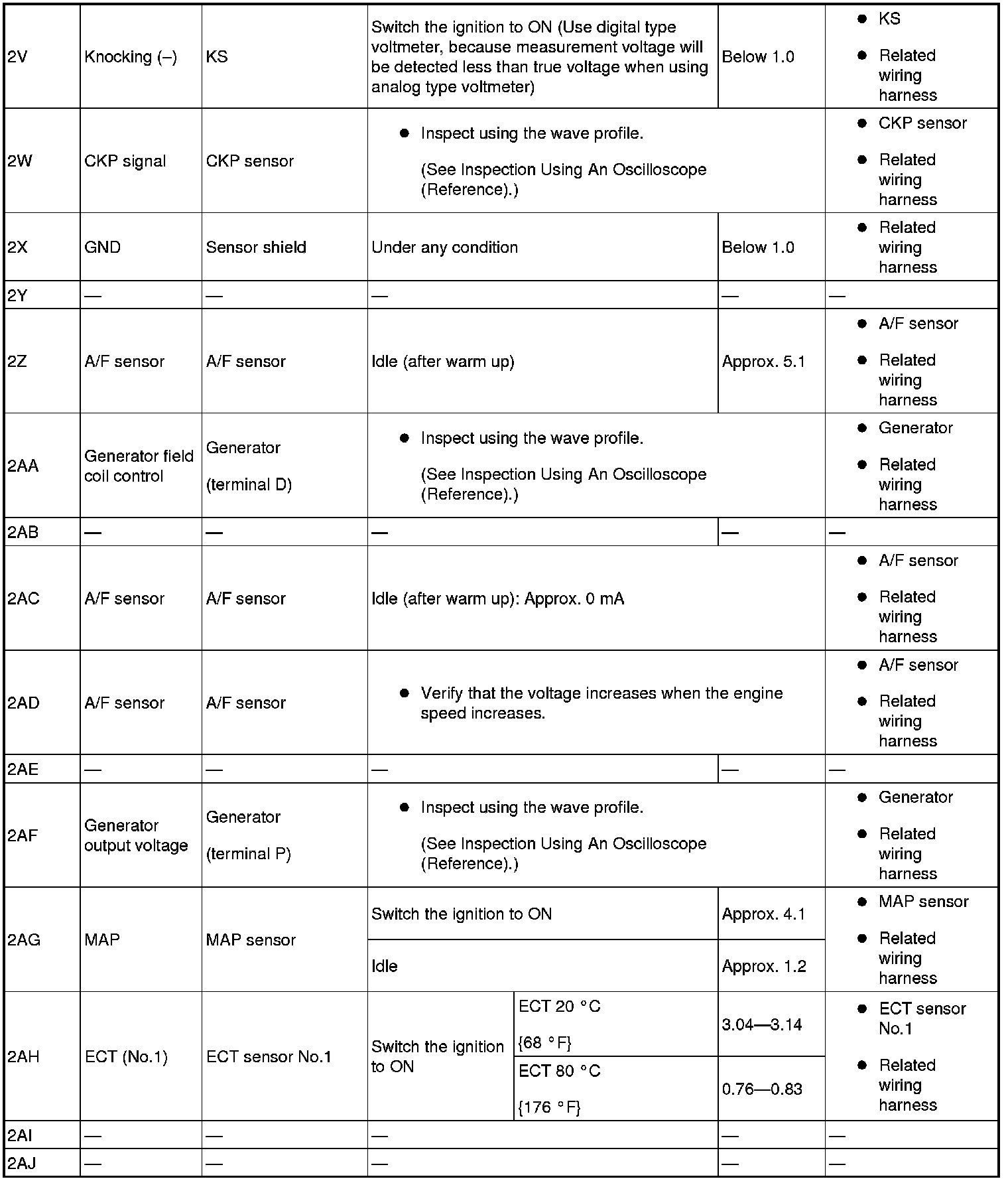 - The PCM terminal voltages vary with change in measuring conditions and vehicle conditions. Always carry out a total inspection of the input systems, output systems, and PCM to determine the cause of trouble. Otherwise, a wrong diagnosis will be made.