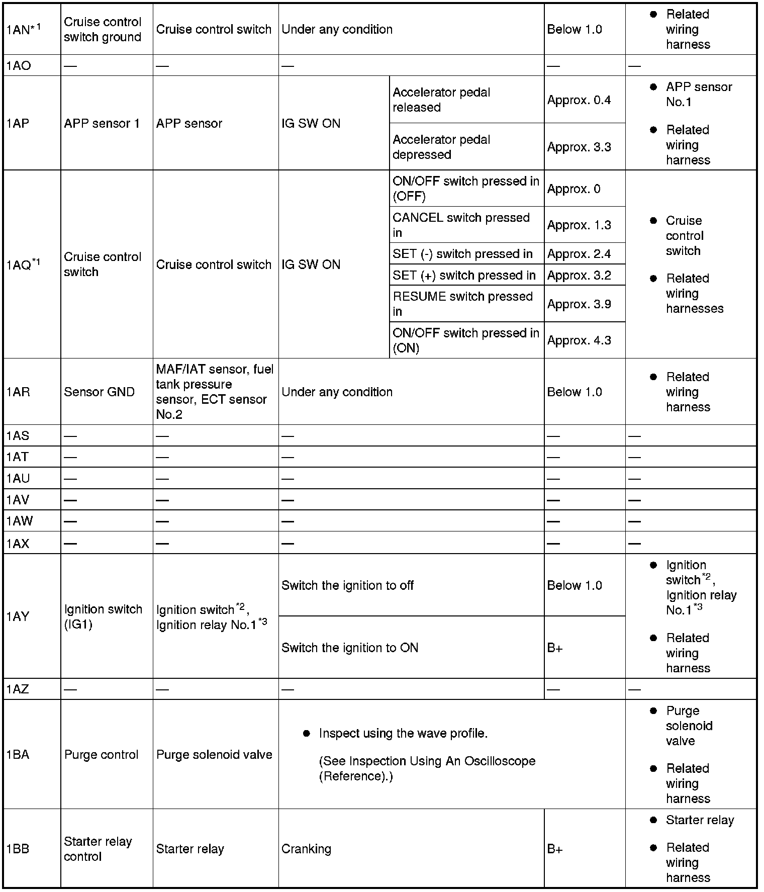 - IGT3(ignition coil No.3): 2L(+)-body ground(-)