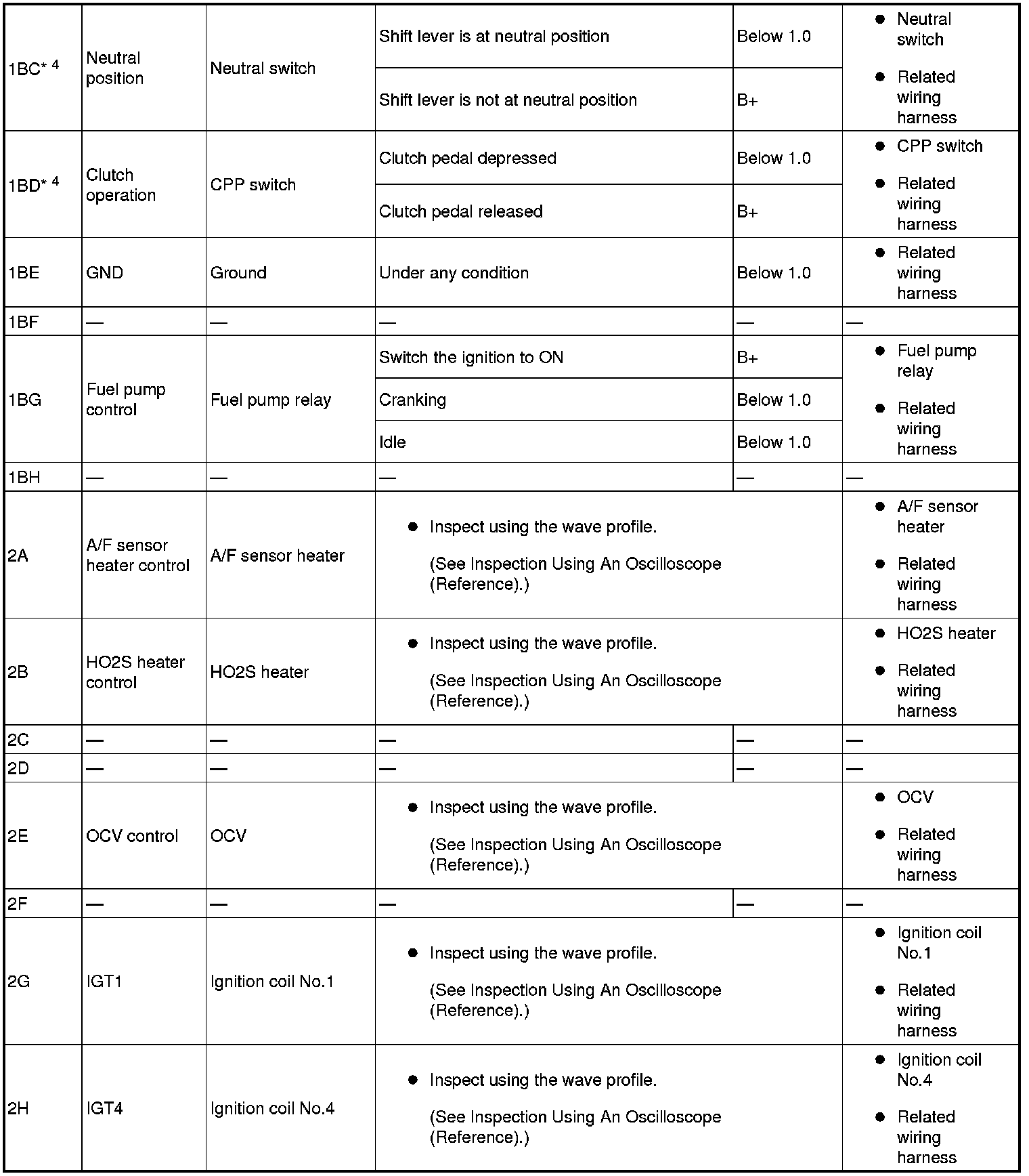 - IGT4(ignition coil No.4): 2H(+)-body ground(-)