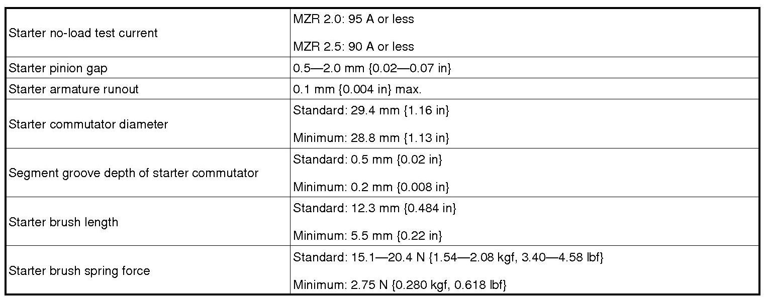 ENGINE TECHNICAL DATA [MZR 2.0, MZR 2.5]