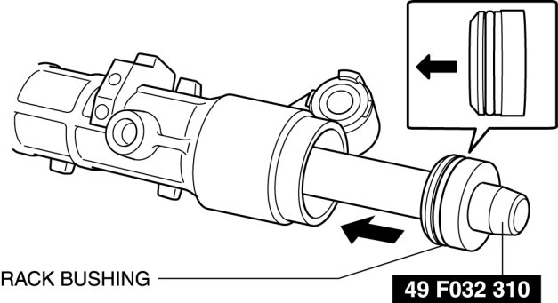 - Assemble the rack bushing so that the taper side faces the piston side of the steering rack.
