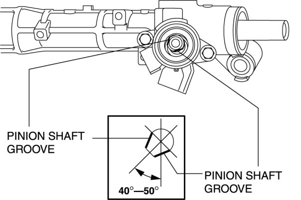2. When the pinion shaft position is as shown in the figure with the rack in the center, insert the pinion shaft and valve housing component.