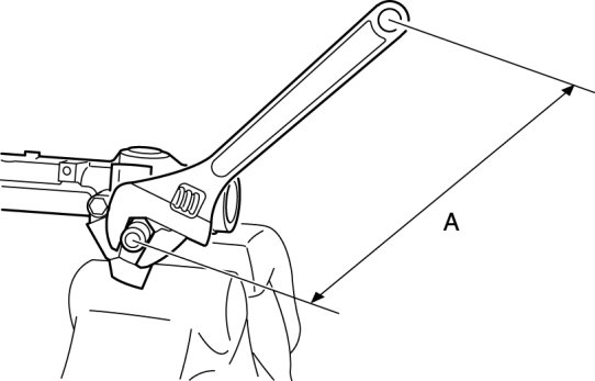 b. Measure the length from the pinion shaft center to the crescent wrench end (application point of pull scale) as shown in the figure. This is dimension A.