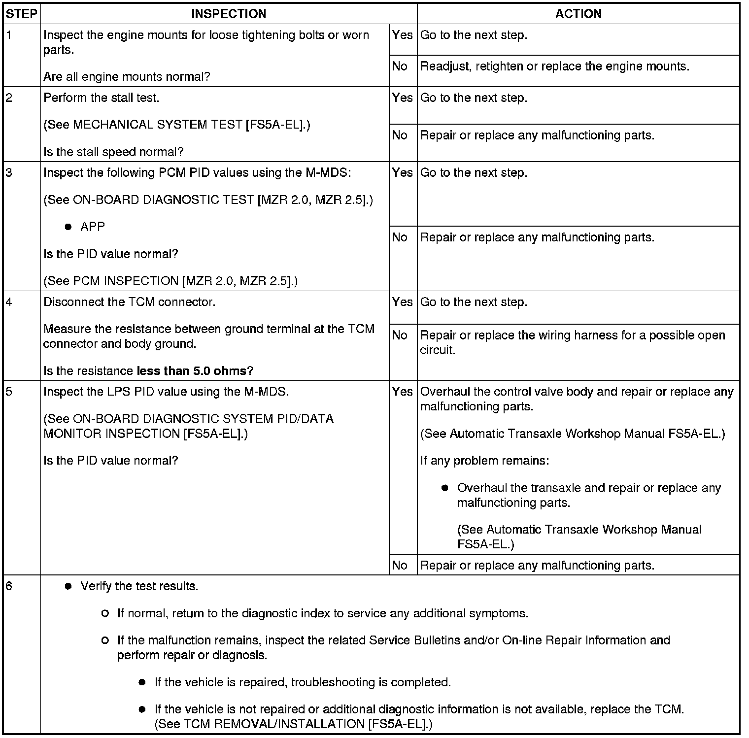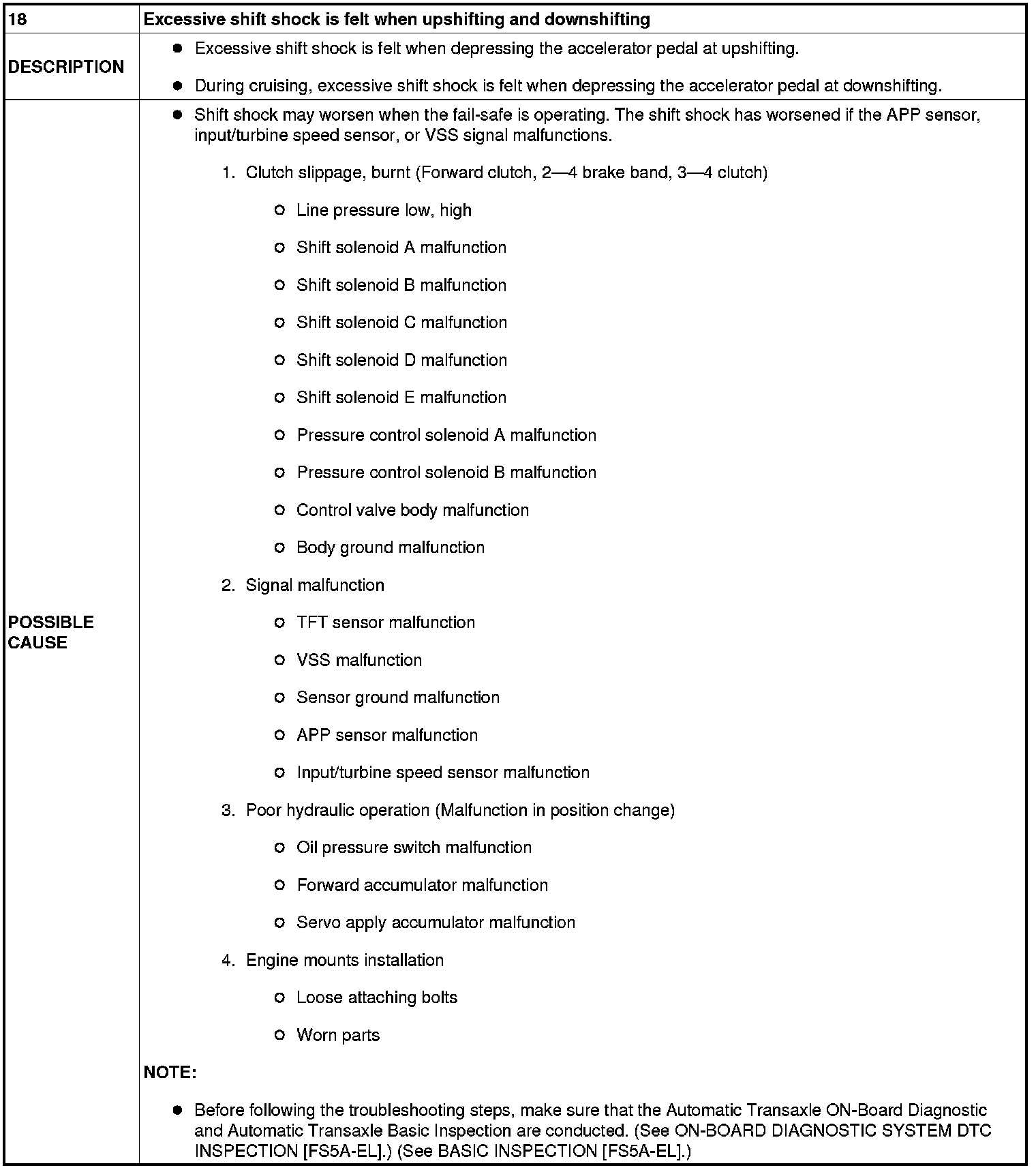 NO.18 EXCESSIVE SHIFT SHOCK IS FELT WHEN UPSHIFTING AND DOWNSHIFTING [FS5A-EL]