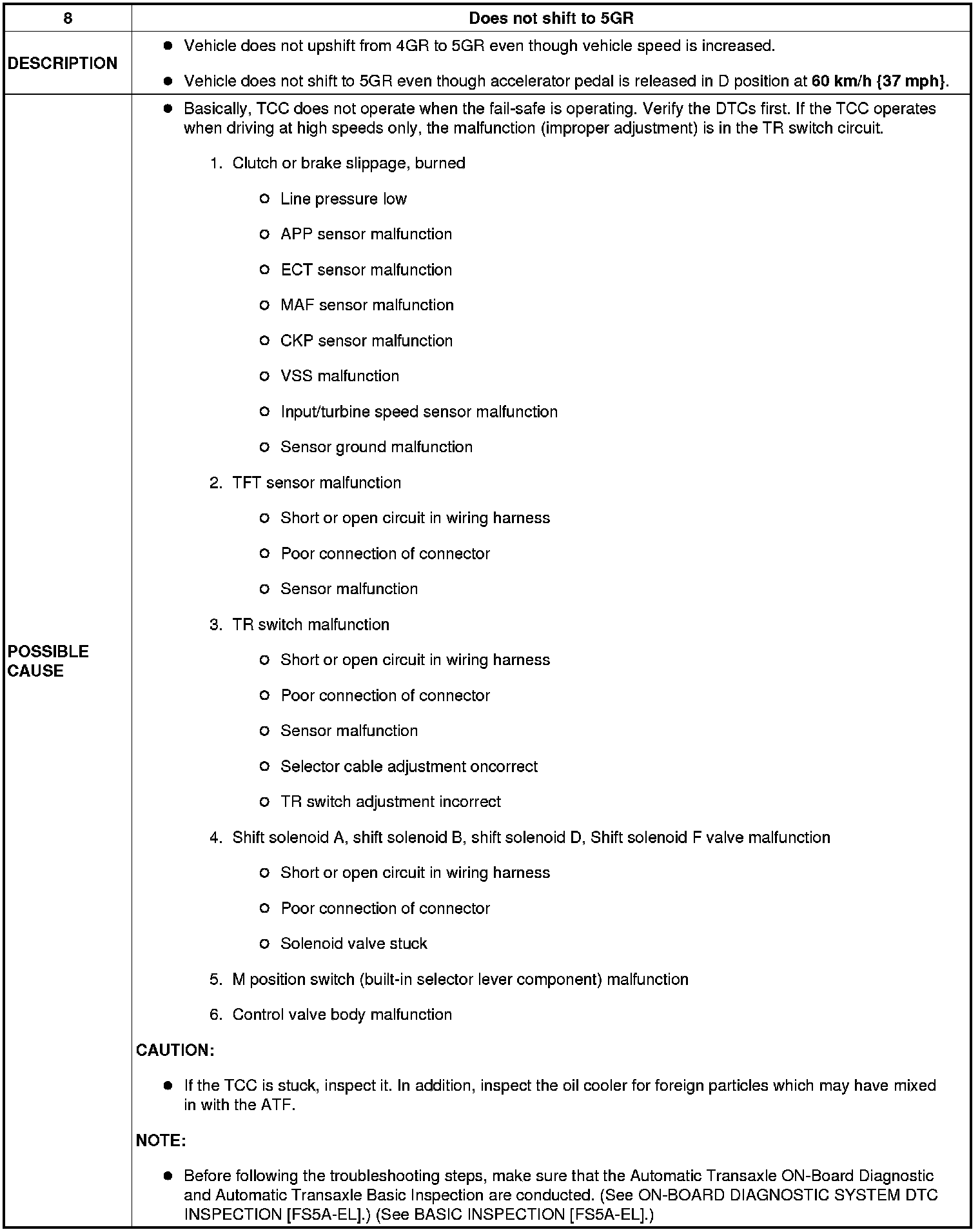 NO.8 DOES NOT SHIFT TO 5GR [FS5A-EL]