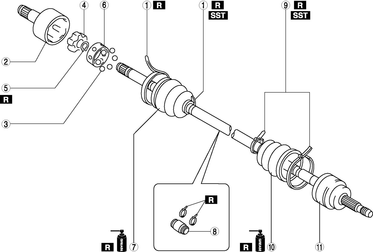 - The wheel-side and transaxle-side boots are different.
