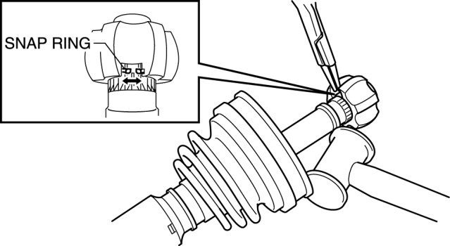 1. Tap the inner ring using a plastic hammer while spreading the snap ring, and assemble the inner ring to the drive shaft.