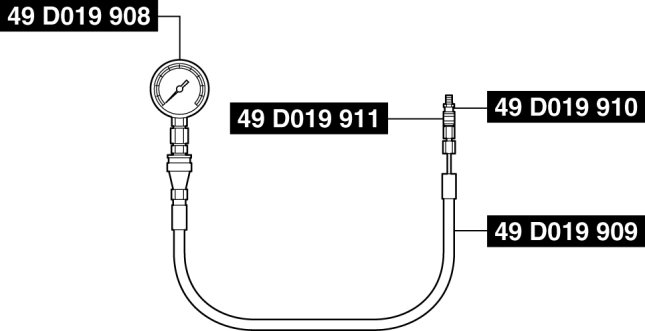 - 49 D019 908 (gauge), 49 D019 909 (hose), 49 D019 910 (adapter), and 49 D019 911 (adapter).