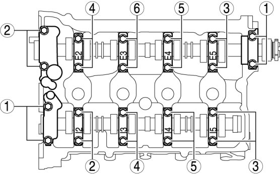 1. Loosen the camshaft cap installation bolts in a few passes in the order shown in the figure and remove the camshaft caps.