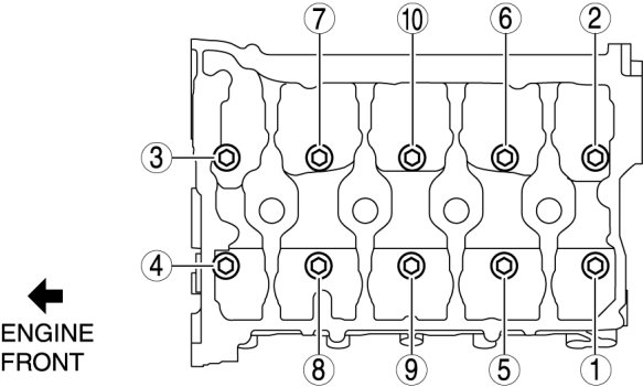 4. Loosen the cylinder head installation bolts in two or three passes in the order shown in the figure and remove them.