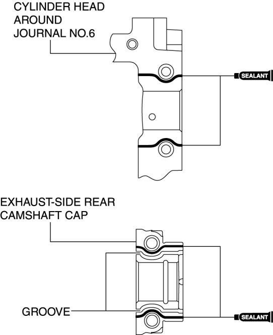 4. Apply sealant (Loctite 962T) around journal No.6 of the cylinder head or the exhaust-side rear camshaft cap.