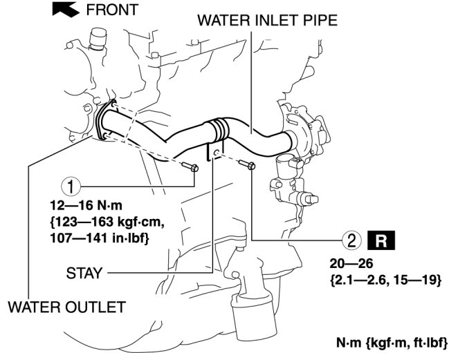 - Do not apply oil (engine oil, ATF etc.) to the O-ring of the water inlet pipe. Otherwise, the O-ring could swell causing a seal malfunction.