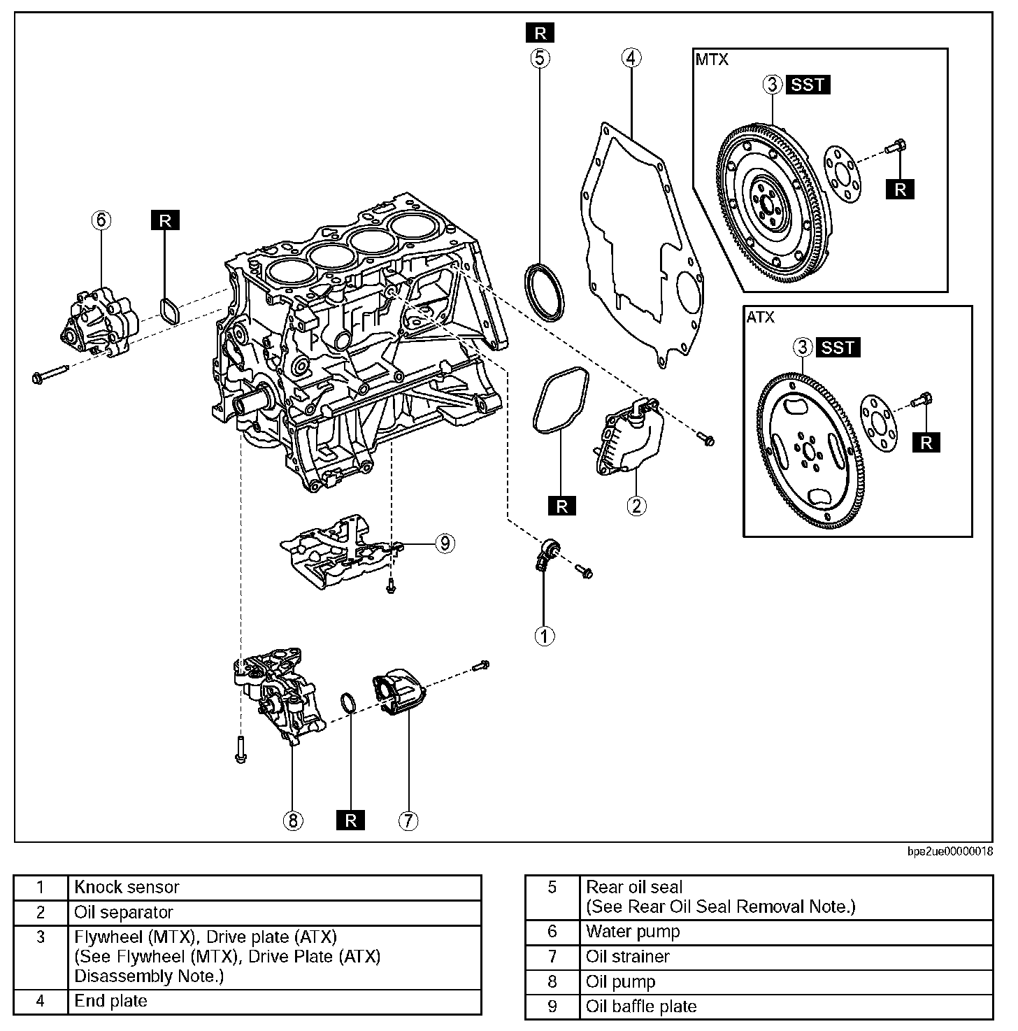 Flywheel (MTX), Drive Plate (ATX) Disassembly Note