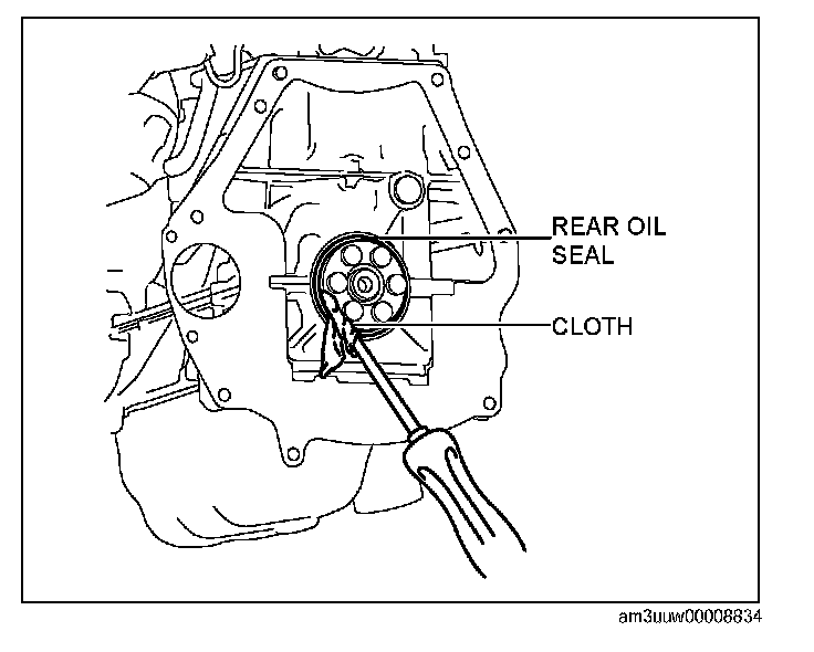 2. Remove the oil seal using a flathead screwdriver with the tip protected by a clean cloth to prevent damage to the oil seal sliding part of the crankshaft.