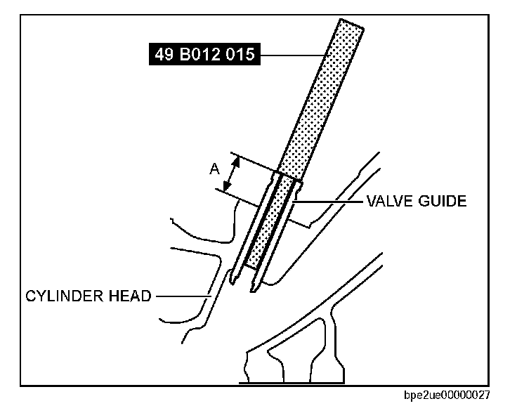 2. Tap the valve guide from the camshaft side using the SST so that the projection height (dimension A) is within the specification.