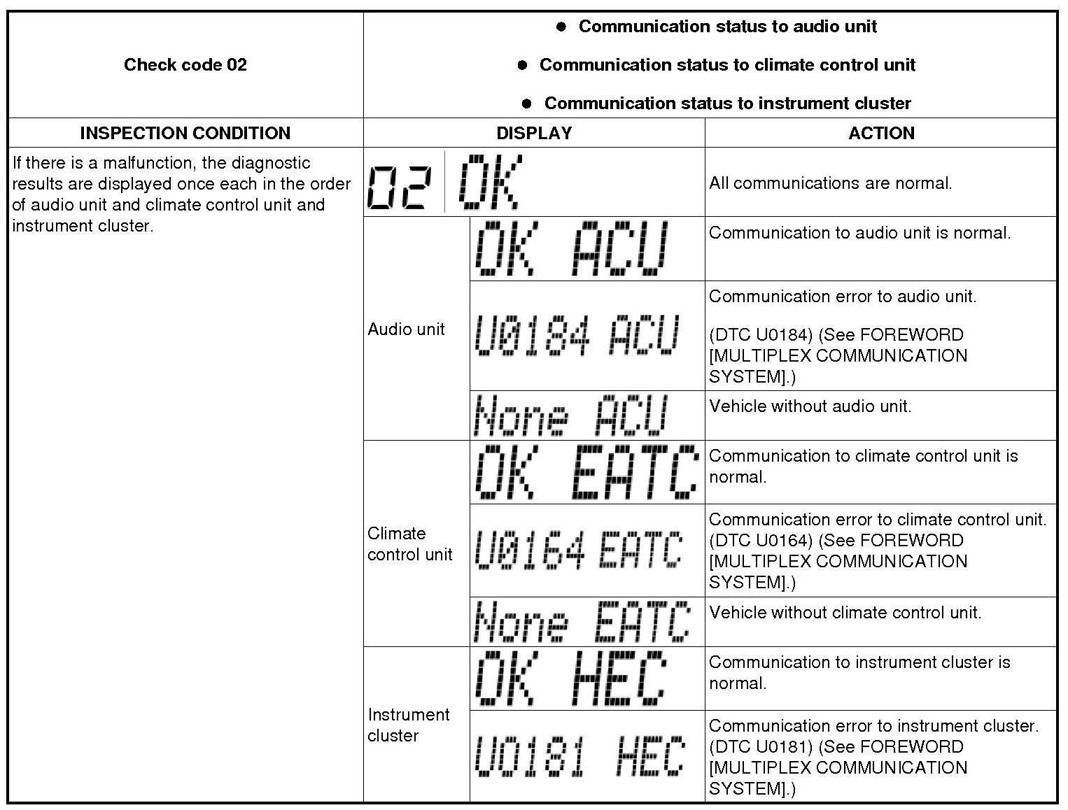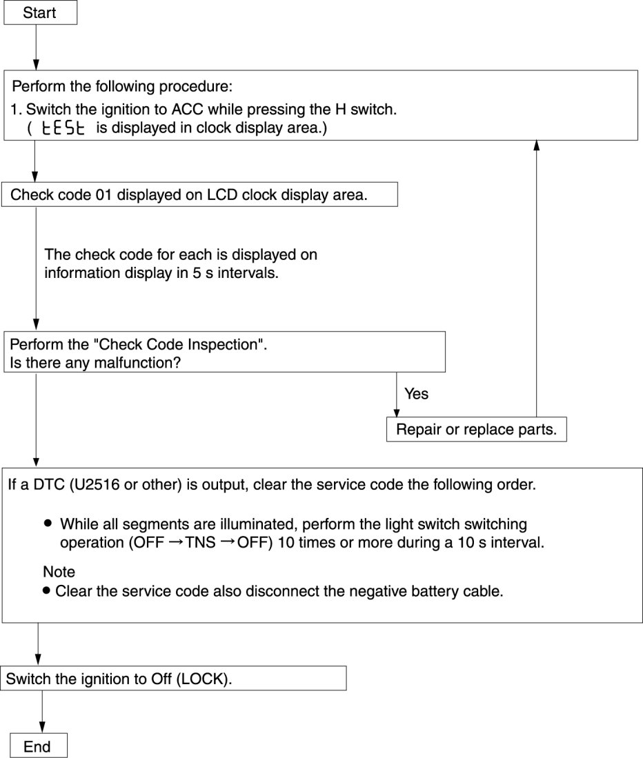 - The check codes are displayed in numerical order. (While performing the inspection, if you want to inspect a check code with a number smaller than the code number you are currently inspecting, terminate the check mode then repeat the inspection from the beginning.)