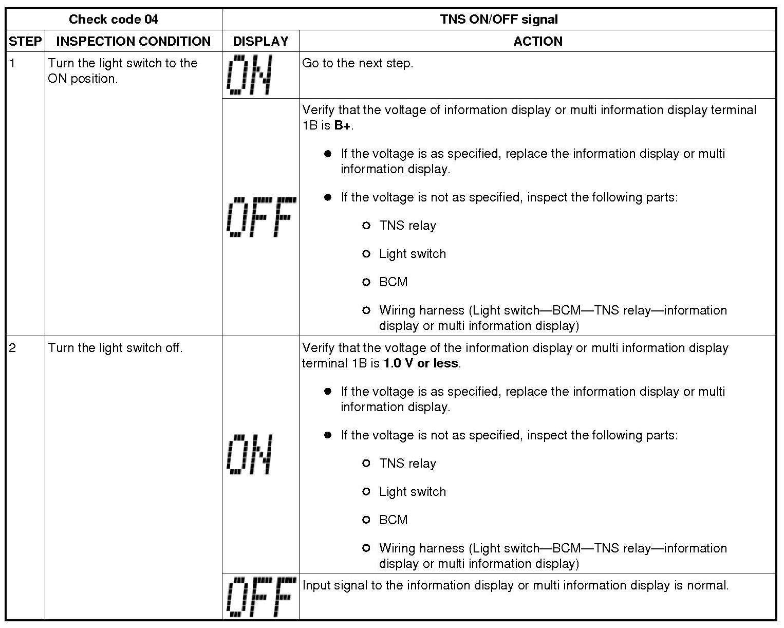 INFORMATION DISPLAY INPUT/OUTPUT CHECK MODE