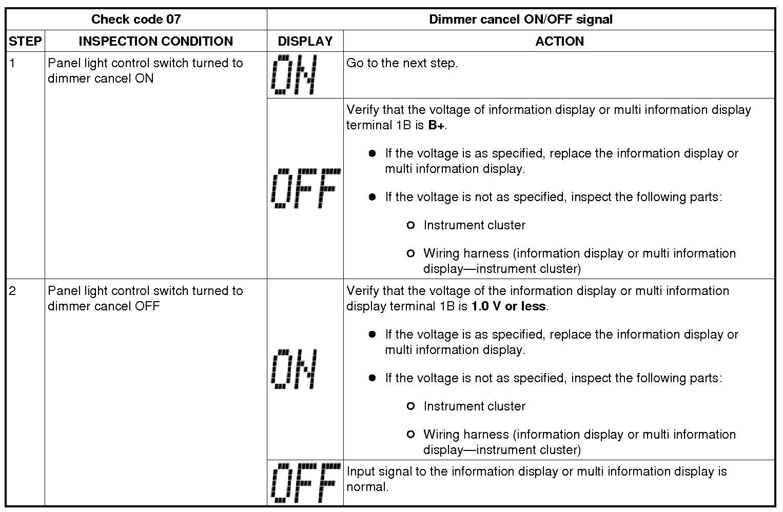 Information Display Input/Output Check Mode