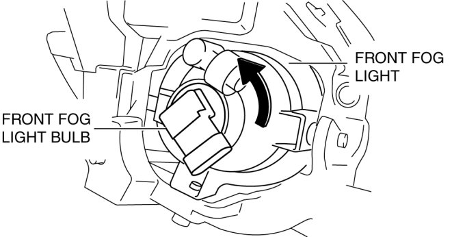 4. Rotate the front fog light bulb in the direction of the arrow shown in the figure.