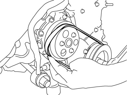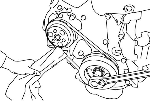 - The rib of the drive belt can be slid from the groove of the water pump pulley by rotating the crankshaft pulley while pulling the cloth in the direction of the arrow.