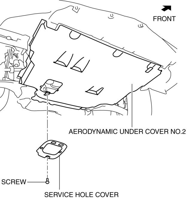 3. Remove the service hole cover (installed to aerodynamic under cover No.2) used to drain the engine oil.
