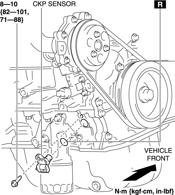 - Do not assemble the CKP sensor or change the installation position using any method other than the following. Otherwise, it could negatively affect engine controls, such as the ignition timing and fuel injection.