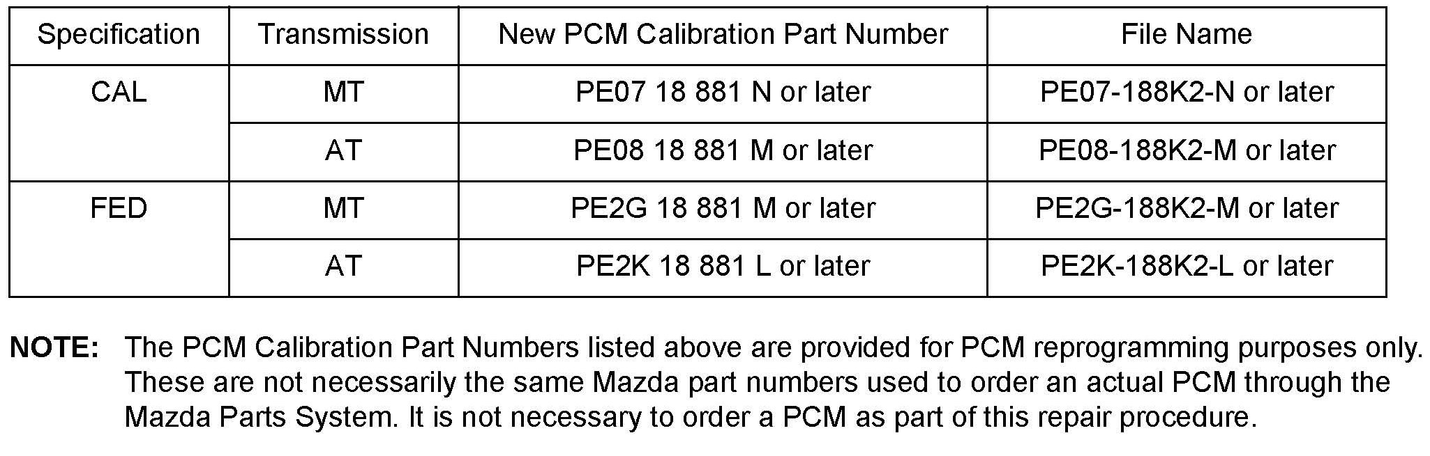 ^ Please be aware that PCM calibration part numbers and file names listed in any Service Bulletin may change due to future releases of IDS software, and additional revisions made to those calibrations for service related concerns.