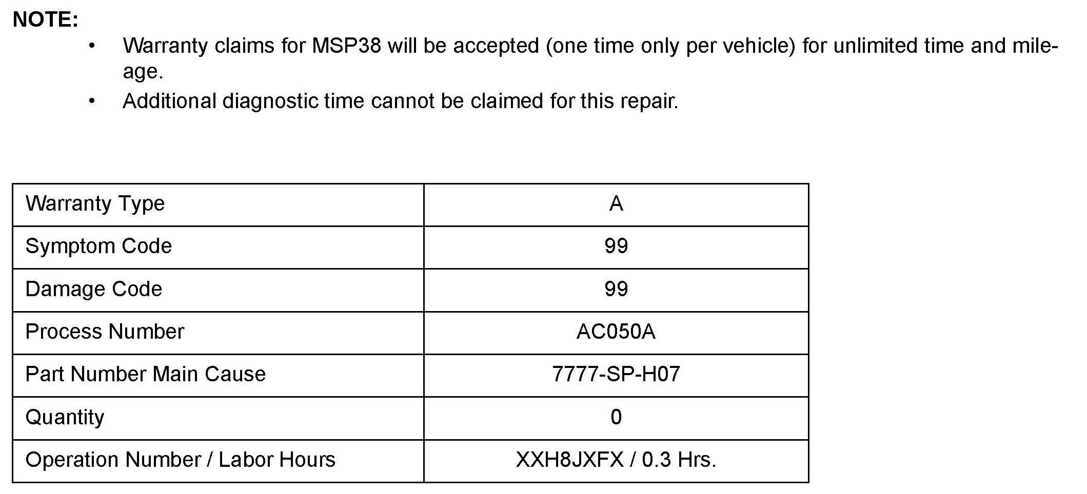 When an applicable retail vehicle is brought into the dealer for any type of repair or scheduled maintenance, perform an eMDCS Warranty Vehicle Inspection and check the status of M5P38. If status of M5P38 is "OPEN" repair the vehicle according to the procedures contained in this service bulletin.