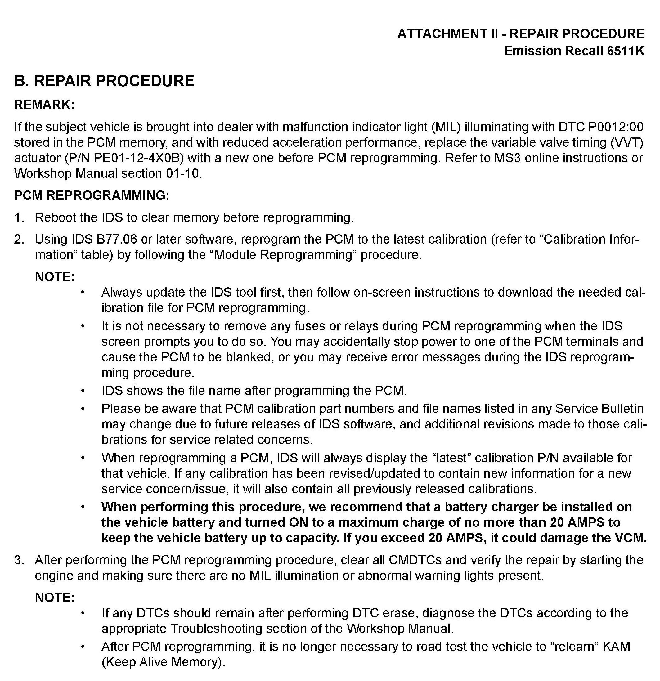 Recall - PCM Update For VVT System Function