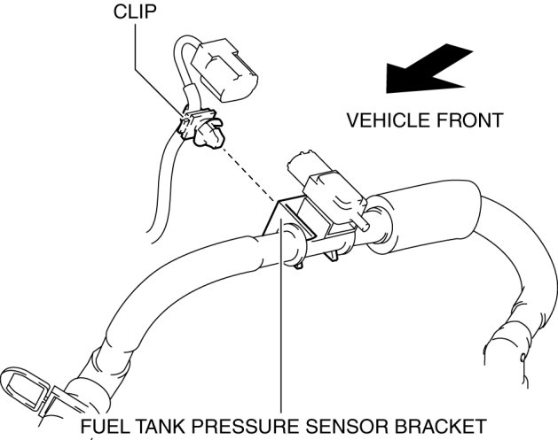 4. Remove the clip from the fuel tank pressure sensor bracket.