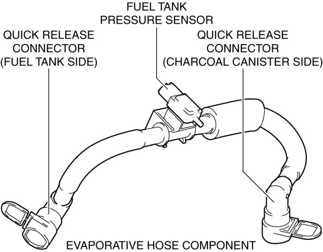 - The fuel tank pressure sensor cannot be removed as a single unit. When replacing the fuel tank pressure sensor, replace it together with the evaporative hose component as a single unit.