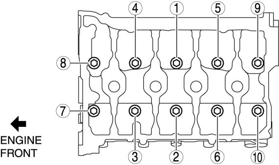Tighten the cylinder head bolts in the order shown in the following 4 steps.