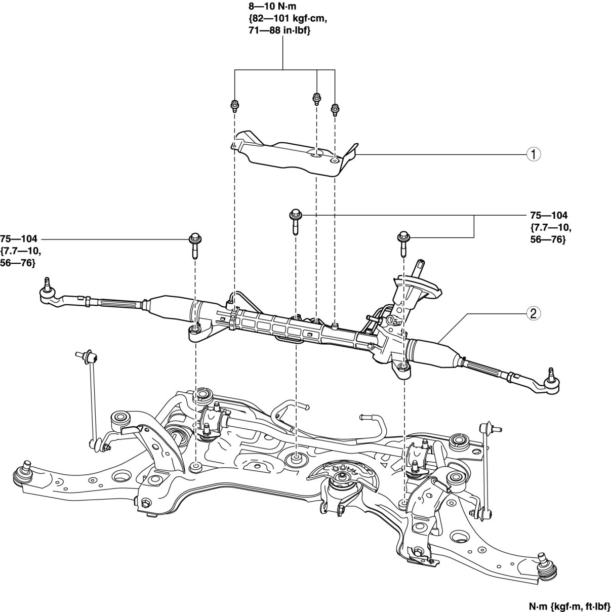 6. After installation, inspect the front wheel alignment and adjust it if necessary. Front Wheel Alignment