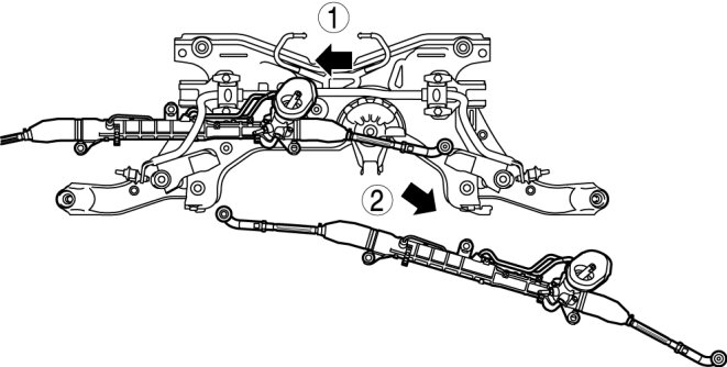 1. Remove the steering gear and linkage installation bolts, move the steering gear and linkage in the direction and order of the arrows shown in the figure, and then remove it.