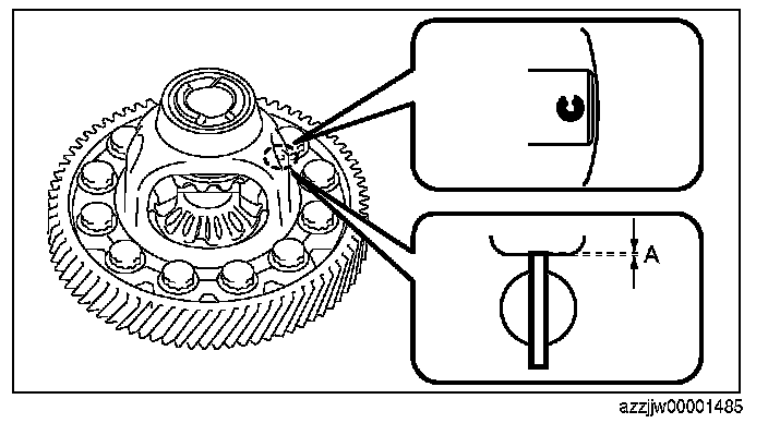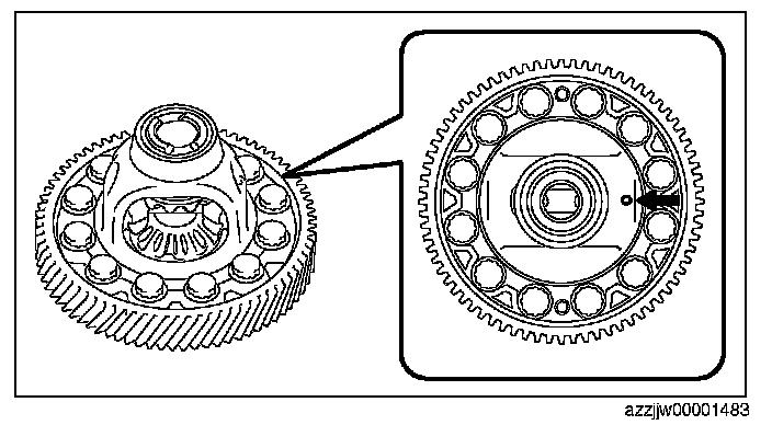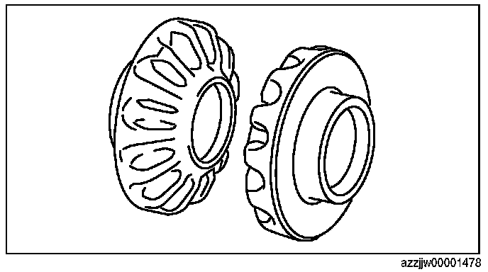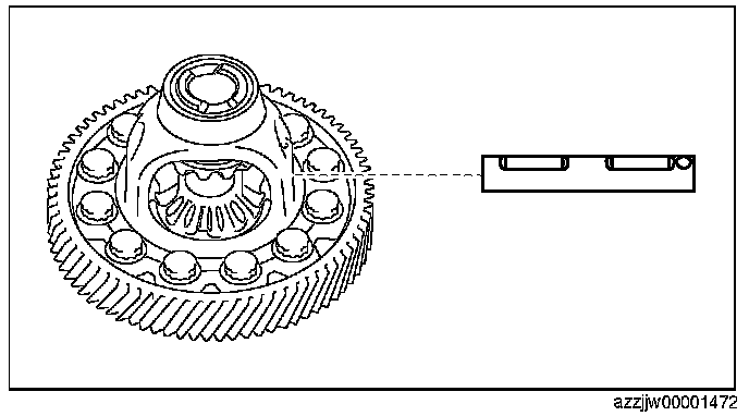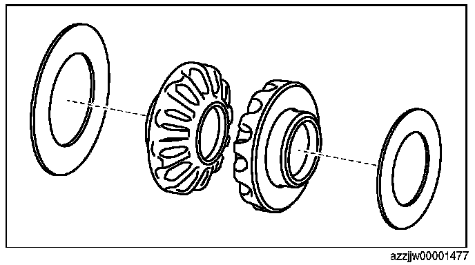 CAUTION: Select the same thickness of the thrust washers on the front and rear sides If the thrust washers of the same thickness are assembled on the front and rear sides, measure the differential backlash again, and if the measurement value does not satisfy the specification, thrust washers of varied thickness on the front and rear sides is alright.