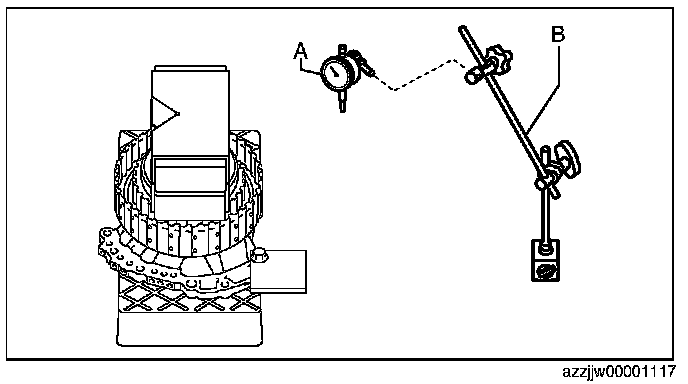 2. Set the dial gauge and magnetic stand as shown in the figure.