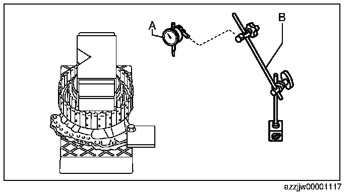 B : Dial gauge value without high clutch piston operating is 0.055 mm {0.00217 in}