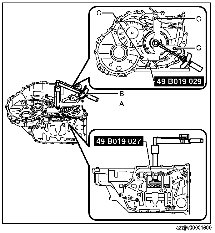CAUTION: Accurately perform the procedure to reduce the error on the secondary gear and output gear preload measurement.
