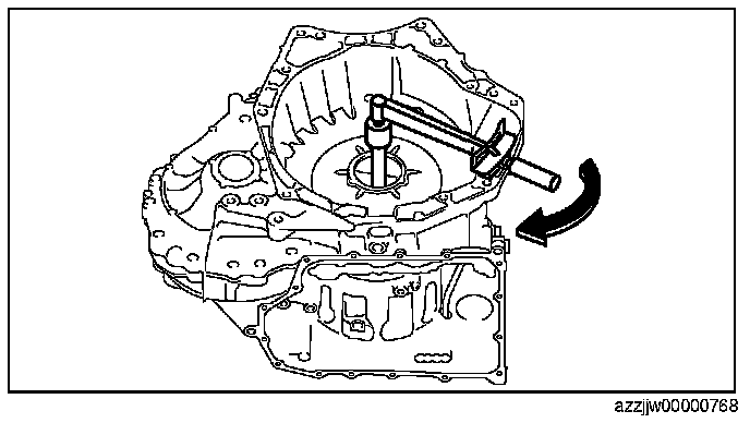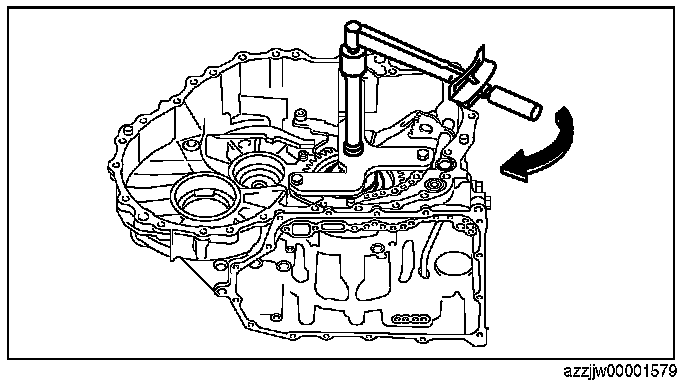 2. Rotate the locknut (primary gear) in the direction of the arrow shown in the figure using a torque wrench and measure the angular contact ball bearing preload.