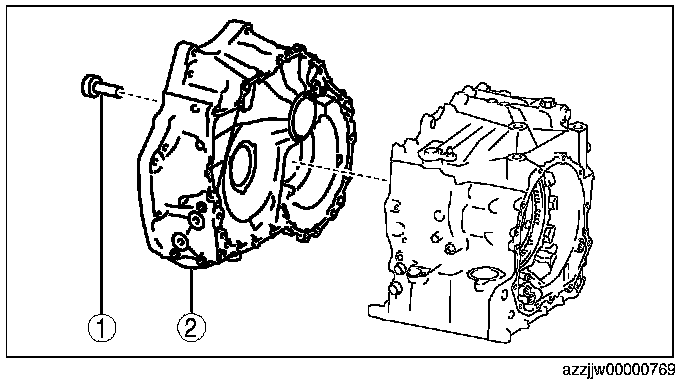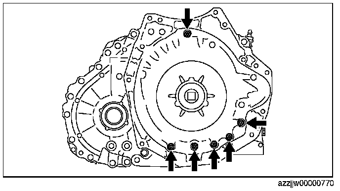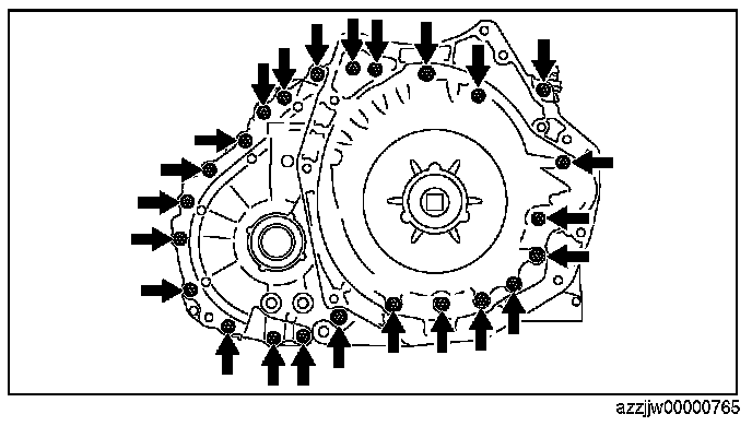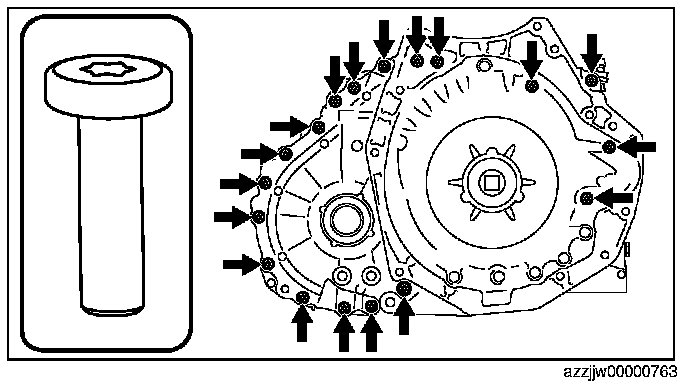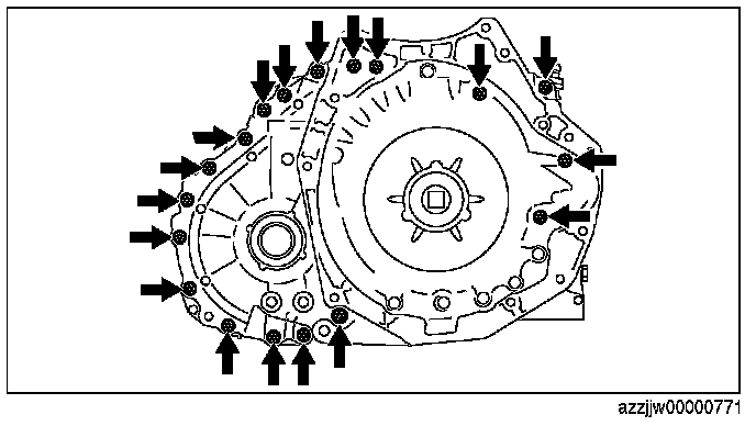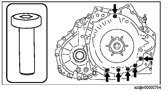CAUTION: Sealant has been applied to the removed bolts. If the bolts are reused it could cause ATF leakage, therefore when performing the automatic transaxle assembly, use new bolts.